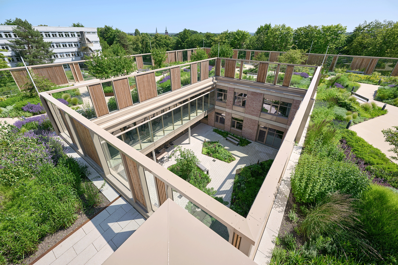 Im planmäßig fertiggestellten ersten Bauabschnitt der Klinik für Psychiatrie und Psychotherapie am Klinikum Lüneburg wurde ein moderner Ersatzneubau mit insgesamt vier Pflegestationen realisiert, von denen zwei als gerontopsychiatrische Einheiten ausgelegt sind.